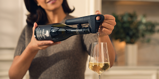 Kantel de fles totdat de Spout boven het glas zit. Druk de Trigger kort in en laat los om te schenken. Druk indien nodig opnieuw op de trigger en zet de fles weer rechtop om te stoppen.